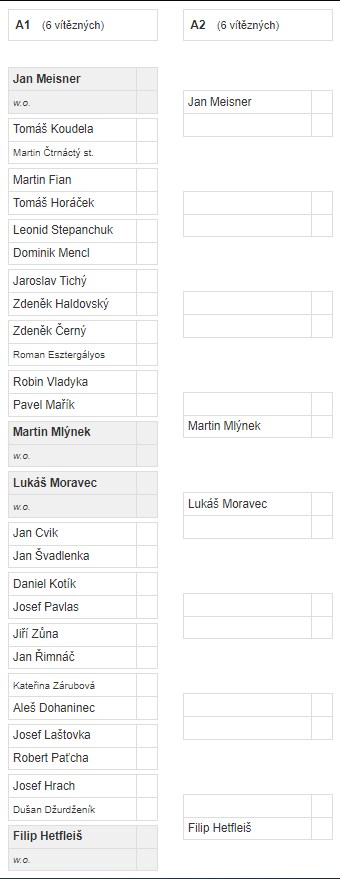- Forma turnaje: double KO (A/B pavouk)
