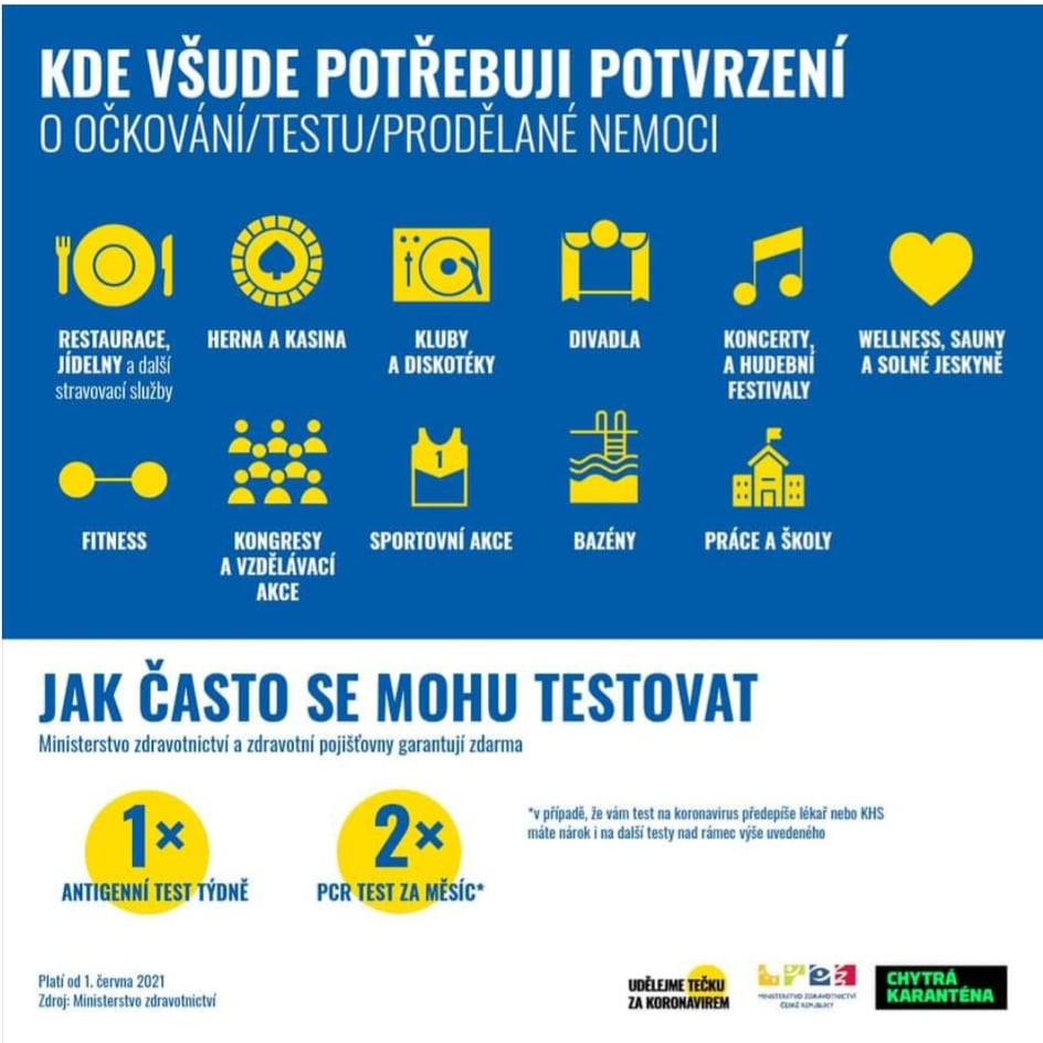 Epidemiologická opatření rozvolnila, vládní opatření povolila. Provozovatelé a majitelé klubů a heren mohou otevřít své živnosti. Přinášíme vám oficiální infografiku Ministerstva zdravotnictví, ze které se dozvíte, kde budete všude potřebovat potvrzení o očkování / testu nebo prodělané nemoci COVID-19, abyste mohli podniky navštívit.